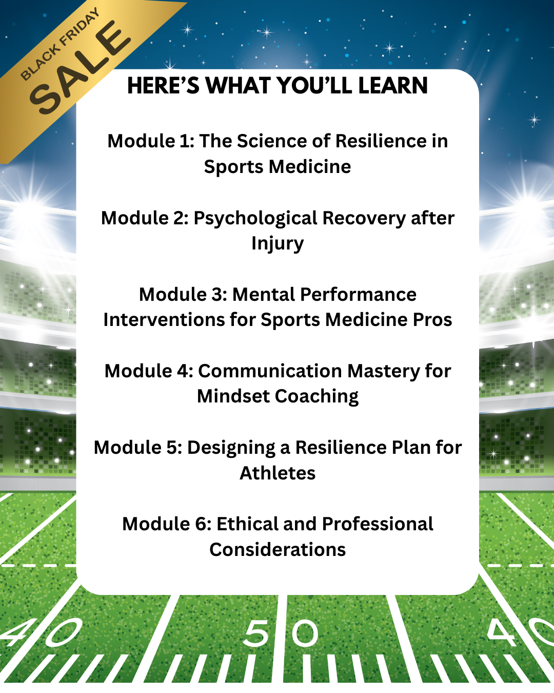 Certified Sports Resilience & Mindset Specialist— eligible for CEUs /11.25 professional development hours.